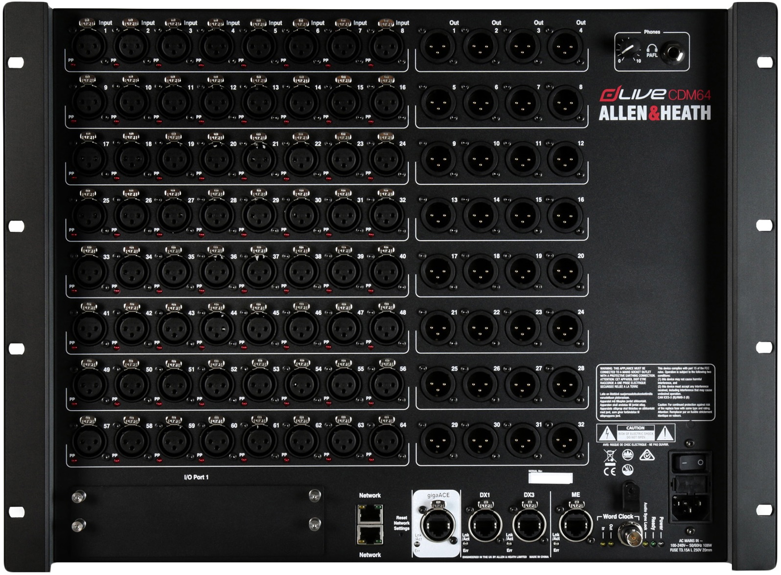 Микшерный рэк Allen&Heath CDM64 оснащен достаточным количеством входов-выходов и надежным процессором XCVI Core от Allen&Heath. Наслаждайтесь 128 входами и 16 стерео FX возвратами с полноценной обработкой. Прокачайте ваши каналы ввода и микширования при помощи эквалайзеров, компрессоров и FX эмуляций. Загрузите встроенные слоты FX с помощью алгоритмов реверберации, задержки или модуляции. CDM32 идеально сочетается с консолями dLive для создания мощной цифровой системы микширования. Allen&Heath CDM64 MixRack обеспечивает мощность и производительность, необходимые для живого микширования.