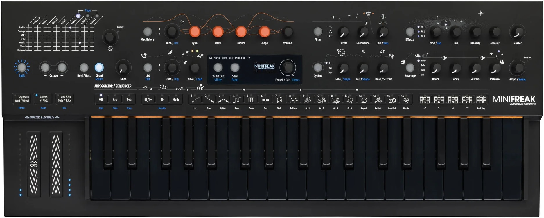 Arturia MiniFreak Stellar - полифонический гибридный 37-клавишный синтезатор, лимитированная версия в измененном дизайне с астрономическим принтом.