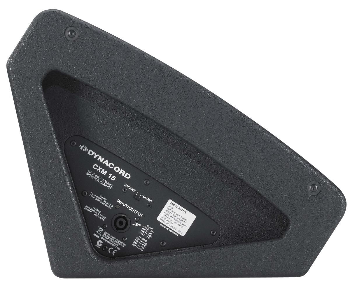 Dynacord CXM 15 – пассивный двухполосный сценический монитор, высокопроизводительная модель профессионального уровня. Пиковая мощность может достигать 1800 Ватт. Программная – 900 Ватт. Уровень звукового давления – до 135 дБ. При этом монитор имеет достаточно компактные размеры и небольшой для модели такой мощности вес – всего 19 килограмм. Акустическая система может работать как со встроенным пассивным кроссовером, так и с активным внешним. Она оснащена надёжной системой защиты и гарантирует стабильную работу при самой интенсивной эксплуатации на концертных площадках, обеспечивая великолепное качество звука. Низкопрофильный корпус монитора имеет эргономичную форму, выполнен из прочной облегченной берёзовой фанеры.
