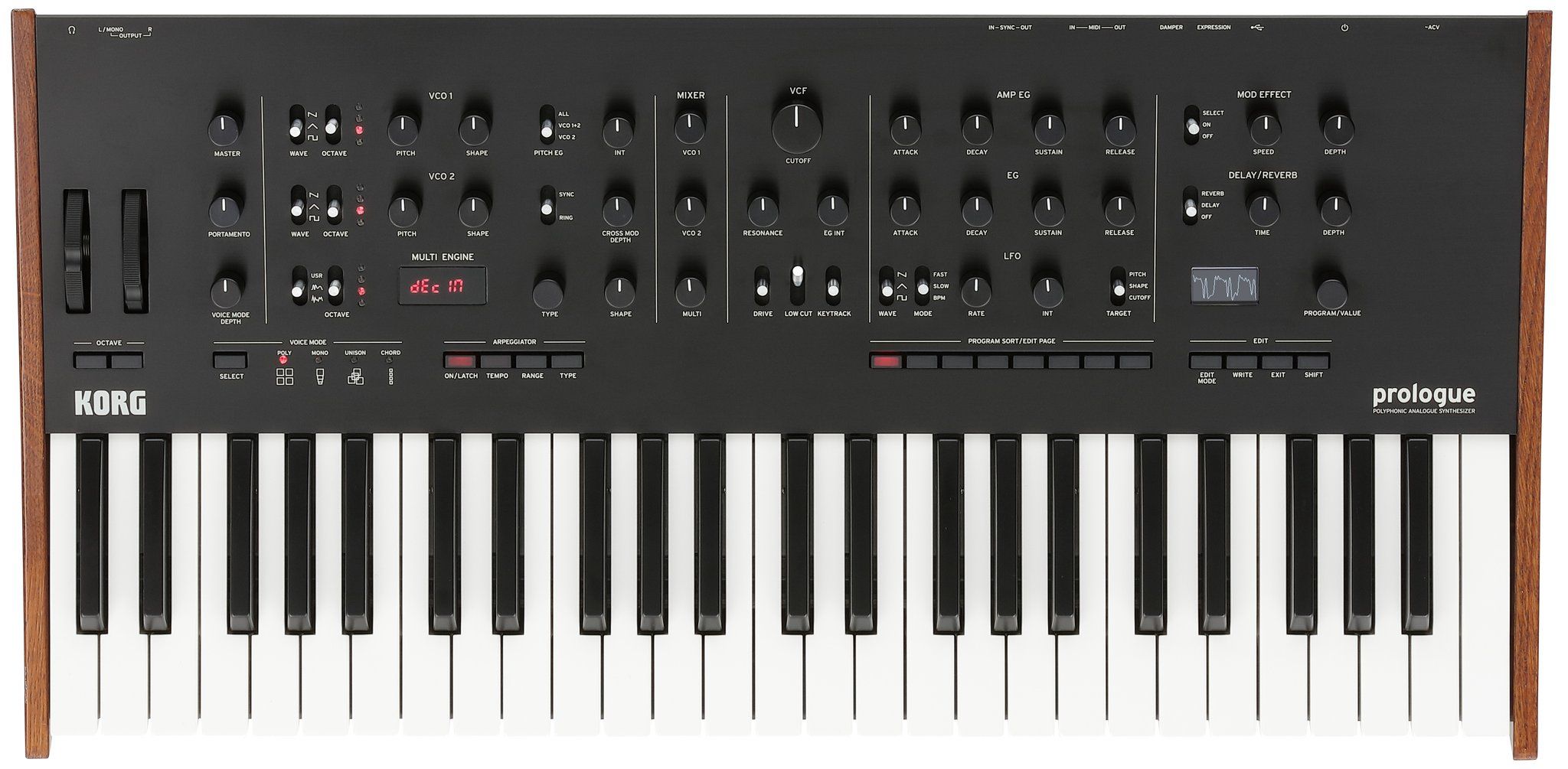 KORG PROLOGUE-8 – полностью программируемый многофункциональный синтезатор профессионального класса от знаменитого японского производителя. Prologue – полифонический аналоговый синтезатор, флагманская модель в линейке, логическое продолжение популярных моделей Minilogue и Monologue. По качеству звучания этот синтезатор превосходит все существующие аналоговые модели. Представленная модель – восьмиголосная, с 49 клавишами. Модель оборудована полноразмерной клавиатурой Natural Touch, чувствительной к силе нажатия, и оснащена высокопроизводительными аналоговыми схемами, происходящими от ранних моделей серии.