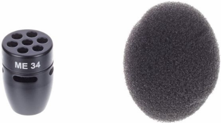 Микрофонный капсюль Sennheiser ME 34 обеспечивает высокое качество звука и низкий уровень собственного шума. Головка имеет прочную, цельнометаллическую конструкцию и матовое антибликовое покрытие чёрного цвета. Используется в комбинации с гибкими металлическими держателями типа «гусиная шея».