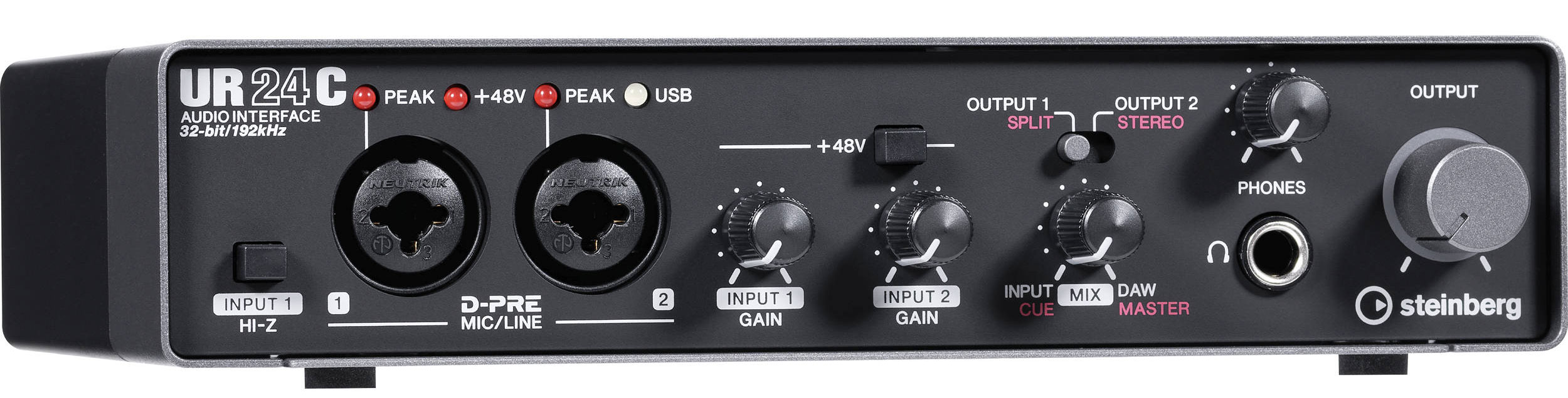Steinberg UR-24C – внешний USB-аудиоинтерфейс для живых выступлений и небольших домашних студий. Работает на шине USB 3.1 и подключается к компьютеру с помощью разъема USB Type C. Карта работает с частотой дискретизации 32 бит/192 кГц, оборудована MIDI-разъемами и DSP-чипом для обработки сигнала эффектами в реальном времени во время мониторинга. К аудиоинтерфейсу можно подключить MIDI-устройства с помощью двух разъемов на задней панели. Встеронный DSP-чип позволяет частично разгрузить компьютер и обрабатывать мониторный сигнал эффектами без задержки.
