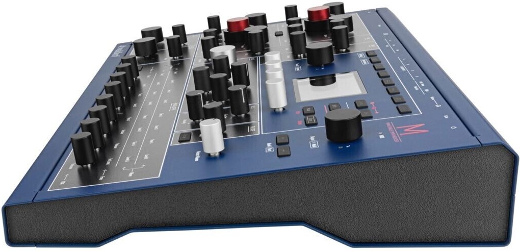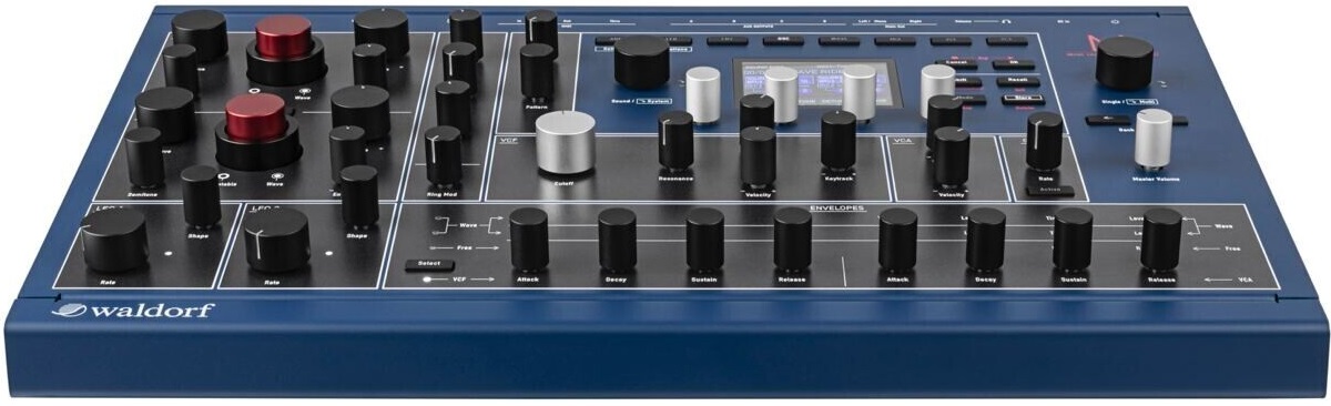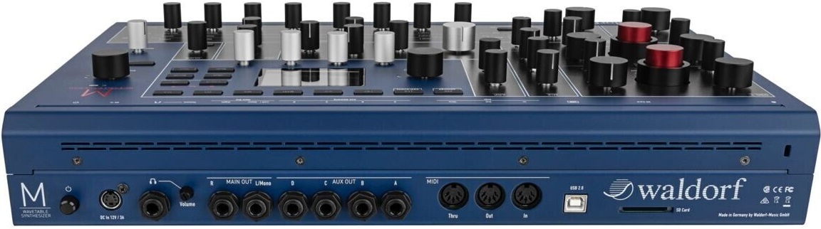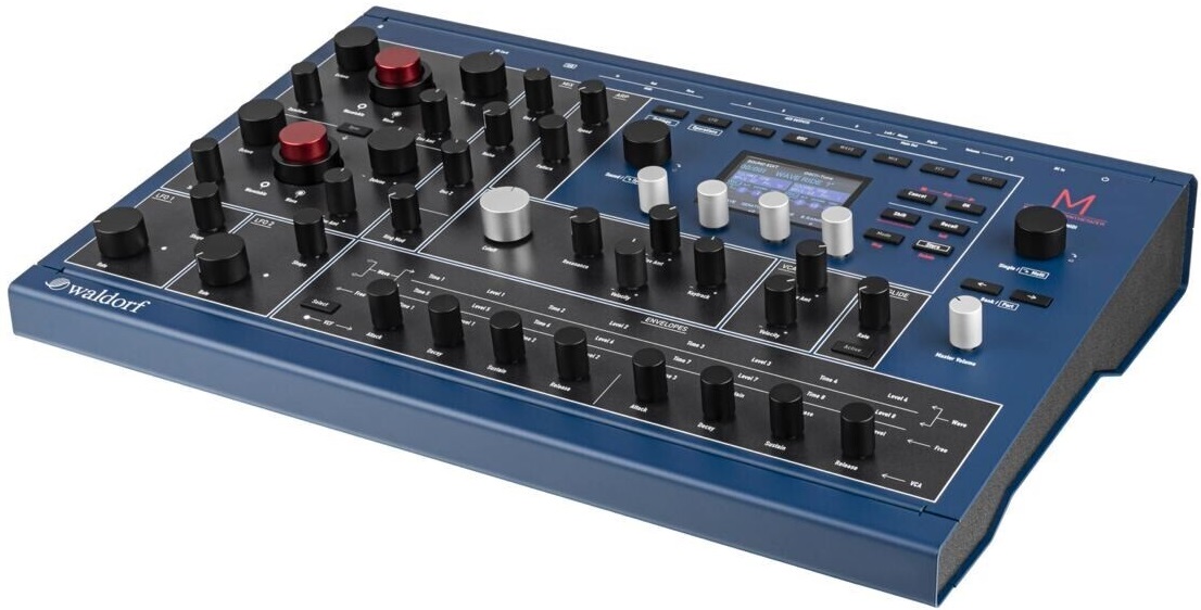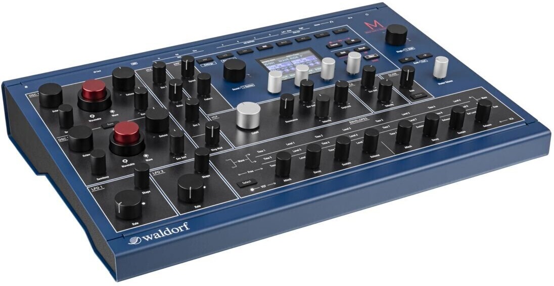 Waldorf M — гибридный восьмиголосный таблично-волновой синтезатор с четырехчастной мультитембральностью. Аналоговый лестничный НЧ-фильтр на схеме SSI 2144 24 дБ / окт с регулируемым резонансом и функцией аналоговой сатурации. Аналоговый стереоусилитель VCA с возможностью панорамирования.