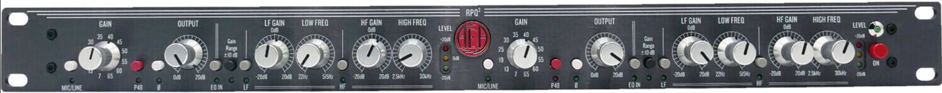 Между 12-позиционным усилением микрофонного предусилителя и плавно регулируемым выходным уровнем доступно до 85 дБ усиления JFET для каждого канала. На каждом канале предусмотрено три светодиода для четкой индикации уровней -20, 0 и +20 дБн. Используйте кнопки эквалайзера на каждом канале, чтобы усилить или ослабить до 20 дБ низких частот (с возможностью регулировки от 40 Гц до 675 Гц) и высоких частот (с возможностью регулировки от 2,5 до 30 кГц). RPQ3 включает в себя внешний универсальный импульсный источник питания, позволяющий работать в любой стране.