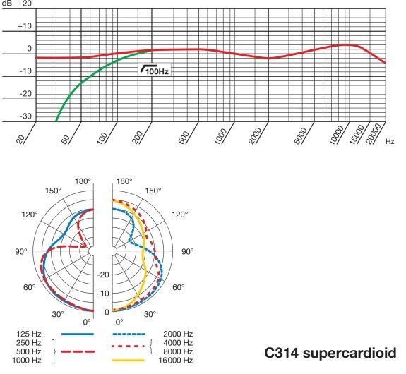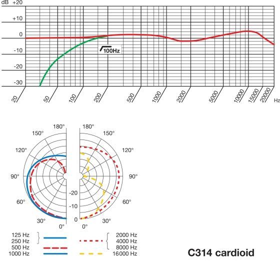 AKG C314 матричный конденсаторный микрофон. Идеальное решение направленое для разнообразных применений, например для подзвучки проекта, профессиональных студий, а также на работе сцене. Используя тот же 1" двойную капсулу диафрагмы как и у популярного C414 XLS обеспечивает 4 выбираемых полярных шаблона; кардиоида, суперкардиоида, omnidirectional и figure 8, в то время как его внутренняя схема обеспечивает низкий уровень собственных шумов.