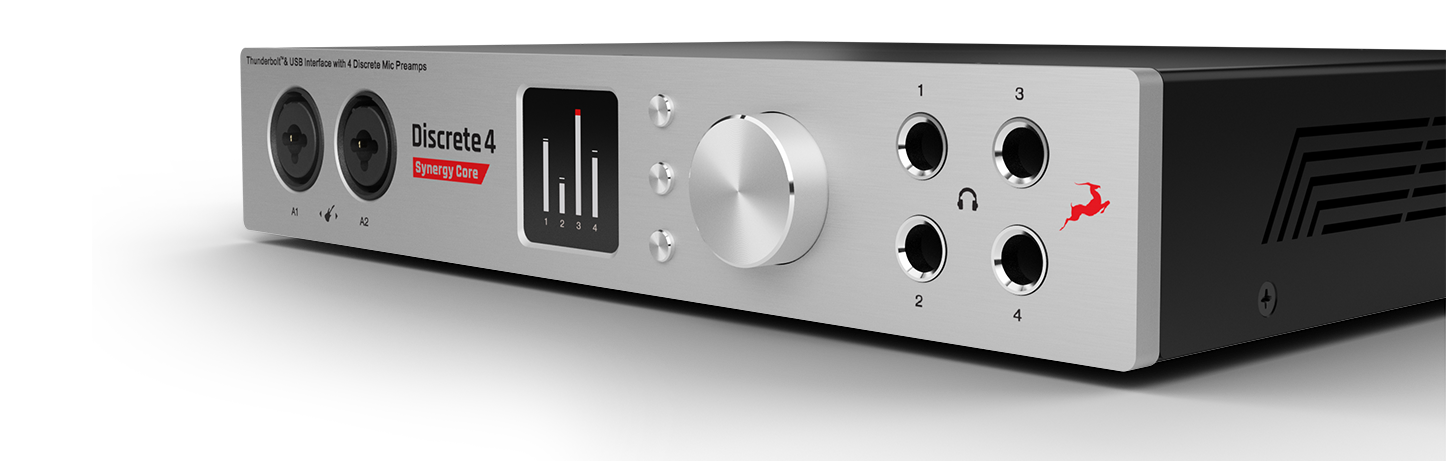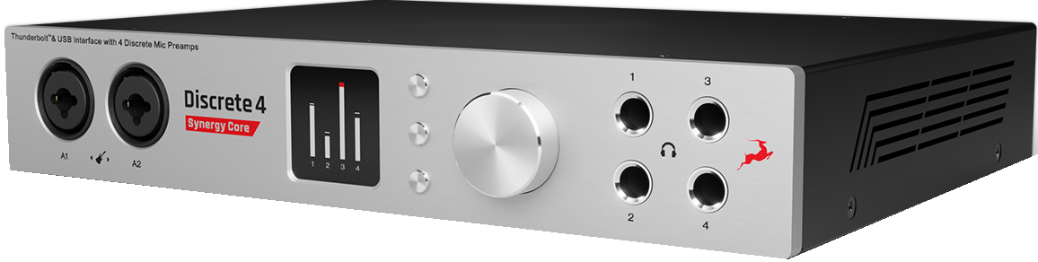 Antelope Audio Discrete 4 Synergy Core – Thunderbolt/USB аудио интерфейс и платформа нового поколения для FX обработки аудио сигнала. Устройство использует возможности массивных параллельных вычислений FPGA (ПЛИС) в сочетании со стандартными DSP, что позволяет разгрузить процессор компьютера и обеспечить сверхмалую задержку при обработке аудио сигнала. Платформа также повышает стабильность процессора при работе с “тяжелыми” синтезаторами, сэмплами и эффектами. ПЛИС динамически воссоздает студийные эффекты и модели микрофонов на уровне схем и компонентов, при этом решая типичную для имеющего только DSP оборудования проблему накопления задержек. Использование в интерфейсе DSP позволяет получить большое разнообразие эффектов. Discrete 4 Synergy Core снабжен библиотекой из 36 студийных эффектов, тщательно моделирующих аппаратные оригиналы. Вся обработка происходит внутри интерфейса и, благодаря FPGA и скоростному подключению Thunderbolt, сопровождается минимальной задержкой. Библиотека может расширяться при добавлении эффектов с сайта производителя. Уникальные предусилители обеспечивают консольное качество звука, а лучшие в своем классе конвертеры – динамический диапазон 121 дБ и частоту сэмплирования до 129 кГц.