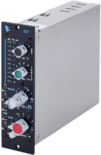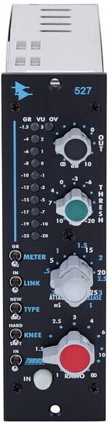 API Audio 527A - модуль компрессора/лимитера серии 500 от API Audio. 527A наполнен фирменным звучанием API, благодаря дискретным ОУ 2510 и 2520, и включает в себя 31-позиционные регуляторы с фиксацией для легкой воспроизводимости. 527A предлагает компрессию с обратной связью, жесткую и мягкую компрессию, а также запатентованную API функцию Thrust для управления боковой цепью в зависимости от частоты. Вы также можете соединить два модуля 527A вместе для удобной стерео работы. Компрессор/лимитер 527A использует дискретные операционные усилители 2510 и 2520 и демонстрирует надежность, долговечность и фирменный звук, характерные для продукции API.