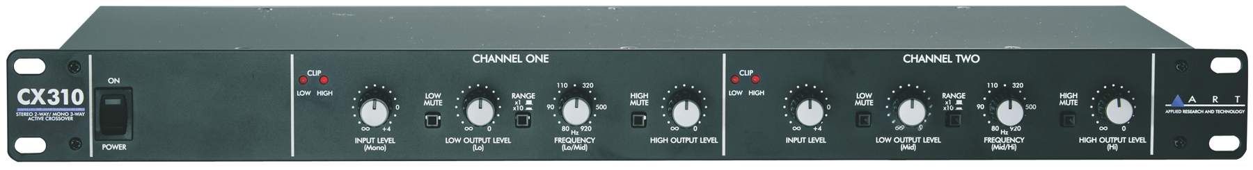Прецизионный кроссовер является необходимым компонентом хорошего акустического комплекта. ART CX310 может работать в режиме двухполосного разделения двух каналов, либо в режиме трехполосного разделения одного канала. Фильтры Linkwitz-Riley четвертого порядка обеспечивают точный срез полосы с крутизной 24 дБ/окт без изменения фазности сигнала. На каждом канале регулируется частота разделения и входной и выходные уровни сигнала.