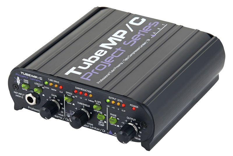 ART Tube MP/C ламповый микрофонный предусилитель с оптическим компрессором, входной каскад предусилителя выполнен на транзисторах, второй каскад на лампе 12AX7, в компрессоре используется лампа 12AX7, балансный XLR/небалансный 1/4" TS Jack входы, балансный XLR/небалансный 1/4" TS Jack выходы, эквивалентный уровень шума на входе -126 дБ, диапазон частот 30-60 000 Гц +/-1дБ, суммарный уровень гармоник <0.1%, входное сопротивление 1 МОм 1/4″ TS Jack вход, 50 КОм XLR вход, выходное сопротивление <300 Ом 1/4" TS Jack, <600 Ом XLR, максимальное усиление +80 дБ балансный вход/выход, +64 дБ небалансный вход/балансный выход, обрезной фильтр НЧ 70 Гц/6 дБ на октаву, фантомное питание +48 В, атака <1 мс (лимитер), 20 мс (компрессор), восстановление 20 мс — 3 с, питание 9 В, 0.1 А.