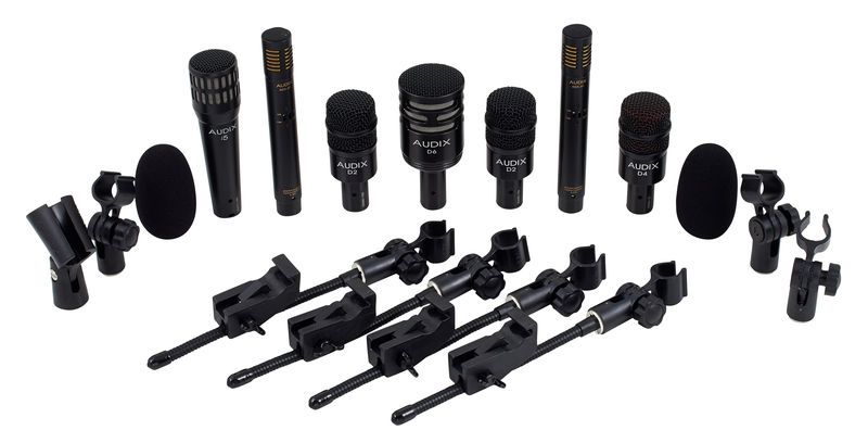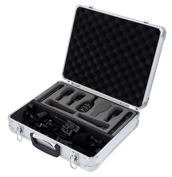 DrumPack 7 комплект микрофонов для озвучивания ударной установки в алюминиевом авиакейсе: 1 x i-5 для ведущего барабана, 2 x D2 для томов, 1 x D4 для напольного тома, 1 x D6 для басового барабана , 2 x ADX51 - конденсаторные оверхеды, 4 x D-Vice (крепления на гусиной шее).