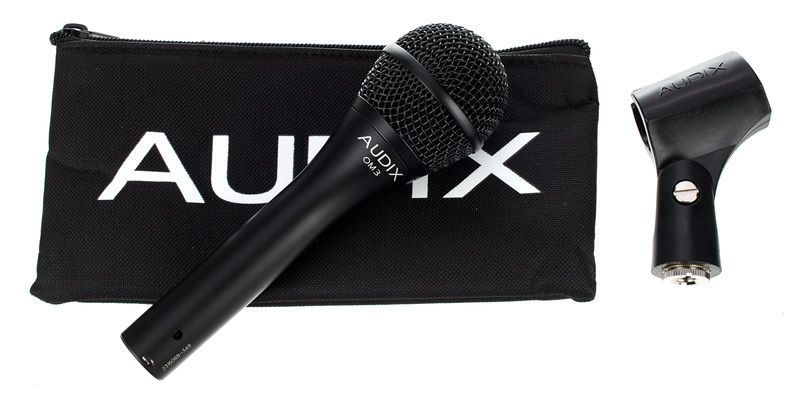 Audix OM3 универсальный динамический вокально-инструментальный микрофон. Модель обладает богатым натуральным звучанием с высокой чёткостью и чистотой, а также устойчивостью к возникновению акустической обратной связи. Так же, как и другие профессиональные туровые модели Audix, ОМ3 способен работать при высоких уровнях звукового давления без искажения сигнала. Подходит как для вокала, так и для подзвучивания гитарных комбо, малого барабана, томов, перкуссии, для живой работы в передвижных звуковых комплексах.