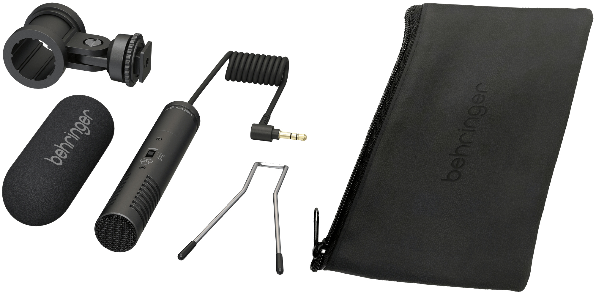 В комплекте кабель 0,6 м с угловым разъемом TRS 3,5 мм, специально разработанный зажим для микрофона с адаптером для башмака камеры, ветрозащита из вспененного материала и защитный чехол для переноски.