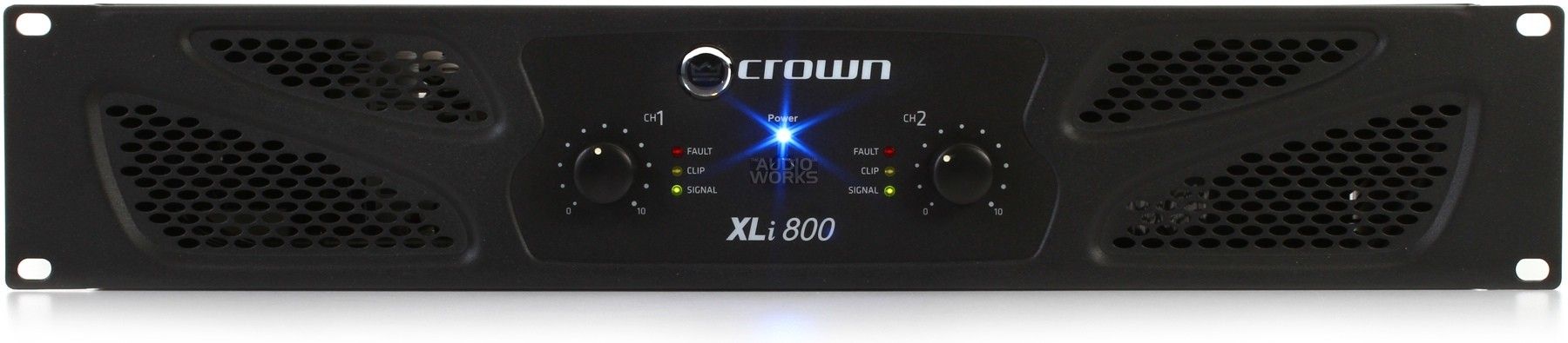 Профессиональный усилитель мощности Crown XLi 800 является начальной бюджетной моделью в линейке XLi от известного бренда Crown Audio. Это двухканальный усилитель мощностью в 300 Ватт при сопротивлении 4 Ом, который оборудован входами XLR (балансные) и RCA (небалансные), а также выходами на разъемах Speakon и клеммами для прямого подключения.