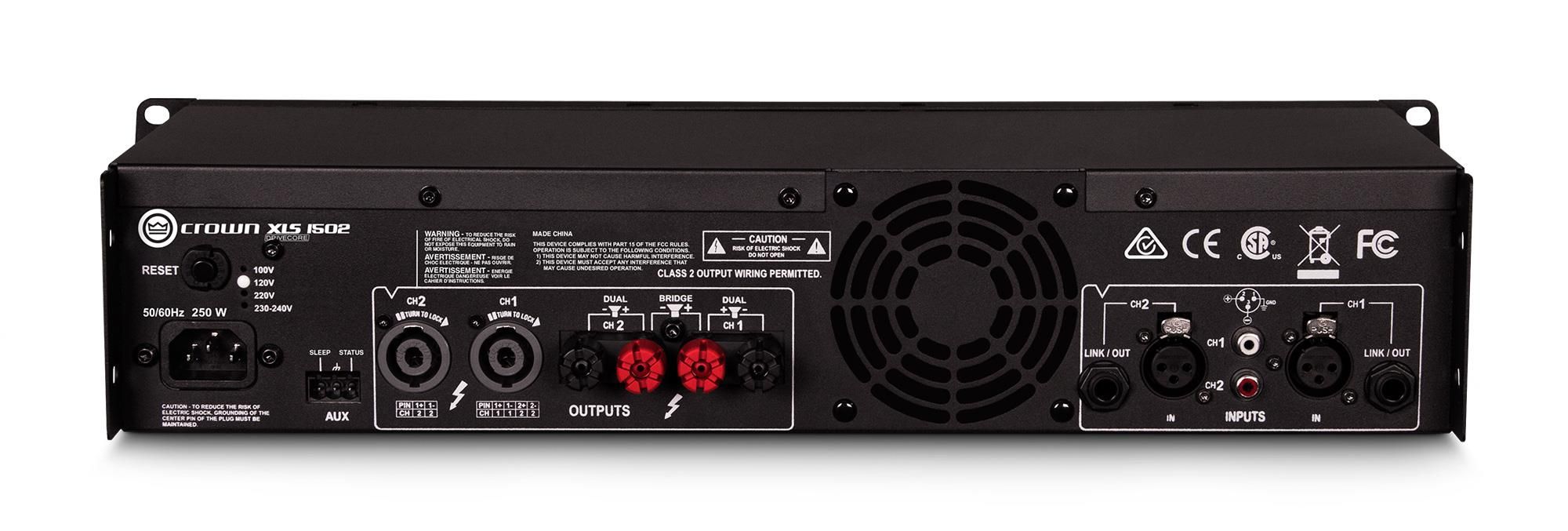 Crown XLS 1502 – это профессиональный усилитель мощности класса D от компании Crown Audio. Этот двухканальный стереоусилитель входит в серию DriveCore 2, основные акценты которой делаются высокую энергоэффективность и уровень КПД (более 90%), что понижает температуру работы выходного каскада и снижает температурные искажения. Это технология гибридных аналого-цифровых интегральных схем, разработанная совместно с Texas Instruments, управляет выходным каскадом усилителей класса D и объединяет на одном чипе промежуточные каскады усиления, схемы управления выходными транзисторами и систему защиты: всего более пятисот электронных компонентов. Подобное решение сокращает путь прохождения сигнала и улучшает характеристики линейности системы.