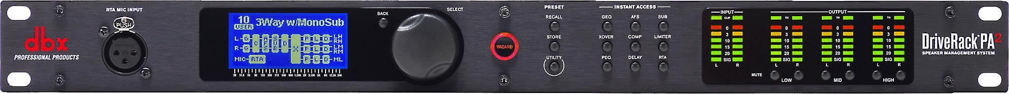 Модель DBX DriveRack PA2 способна обеспечивать всю обработку, которая необходима между микшером и усилителем для оптимизации и защиты ваших динамиков. С последними научными достижениями, которыми являются собственные алгоритмы DBX в AFS и AutoEQ, новый модуль обеспечивает входные задержки ввода для системы FOH в фоновом режиме, контроль Ethernet через Android, IOS, Mac или Windows-устройства, а также контроль для обновленных Wizards. Модель DBX DriveRack PA2 продолжает наследовать потрясающе звучащие, мощные и доступные процессоры управления громкоговорителями линейки DriveRack, продолжая воплощать в себе целое поколение подобных устройств.