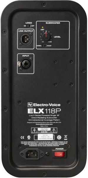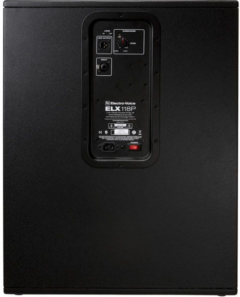 Electro-Voice ELX 118P представляет собой активный сабвуфер. Эту акустику можно использовать как отдельно, для усиления низкочастотного диапазона, так и вместе с двух- трех-полосными системами. Внутри кабинета расположен мощный усилитель D-класса (700 Вт) с системой охлаждения пассивного типа. Мощность сабвуфера составляет 400 Вт, пиковая - 1600 Вт. Линейка акустических систем Live X прекрасно проявляет себя на большой сцене, эти системы надежны и эффективны при активной эксплуатации и туровой работе.