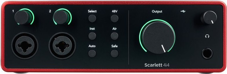 Scarlett 4i4 4th Generation оснащен двумя микрофонными/инструментальными Hi-Z входами, четырьмя линейными входами, четырьмя балансными выходами, специально разработанным усилителем для наушников и стереовходом Loopback. Микрофонные предусилители нового поколения обеспечивают 69 дБ чистого усиления. Функция Air Mode добавляет присутствие верхних частот, насыщая их гармониками. Цифро-аналоговые и аналогово-цифровые преобразователи на основе флагманских интерфейсов RedNet обеспечивают чистый звук и широкий динамический диапазон 120 дБ. Функция Auto Gain позволяет оптимизировать уровни входящих сигналов одним нажатием кнопки, а Clip Safe автоматически балансирует уровень усиления при возможном риске клиппирования. Специально разработанный усилитель для наушников с точным и чистым воспроизведением оснащен независимым регулятором уровня сигнала. Функция Easy Start помогает осуществить первую настройку интерфейса, предлагает советы по записи и другой полезный контент.