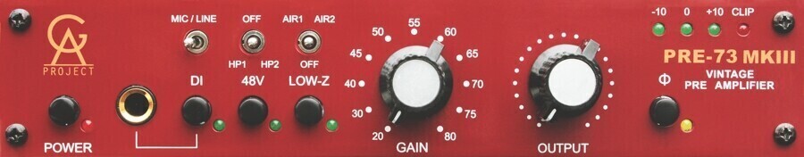 Golden Age Project PRE-73 MKIII - одноканальный микрофонный и инструментальный предусилитель, с дискретной схемотехникой и трансформаторными входами и выходами. В сигнальном тракте используются только дискретные компоненты.