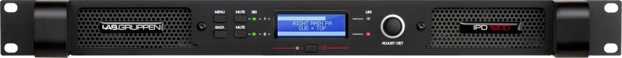 Lab.gruppen IPD1200 – это компактный инсталляционный двухканальный усилитель мощности класса D, входящий в серию IPD производителя Lab.gruppen, предназначенный для применения в постоянных инсталляциях (барах, ресторанах, моллах, отелях, церквях и т.д.), рэковое размещение, высота 1U. Усилитель допускает подключение низкоомной нагрузки сопротивлением 2, 4, 8 или 16 Ом, выдавая до 1200 Ватт на оба канала во всех режимах. Отличительная черта микшера – встроенный DSP с настраиваемыми пресетами для параметрических эквалайзеров в количестве сорока штук, 100 пресетов можно сохранять своих. В DSP также входят настраиваемые фильтры НЧ и ВЧ, установка входной и выходной задержки, кроссовер с многочисленными фильтрами. Кроме того, он оборудован дополнительной защитой звука для акустических систем, которая включает в себя лимитер, конфигурируемый с помощью фирменного ПО IntelliDrive Controller. В наборе есть и пресеты IPD LoadLibrary для быстрой конфигурации и оптимизации широкого спектра АС, как собственных, так и третьих. Управление параметрами осуществляется с помощью ЖК-дисплея и контроллеров на фронтальной панели, а также по локальной сети из фирменного ПО.