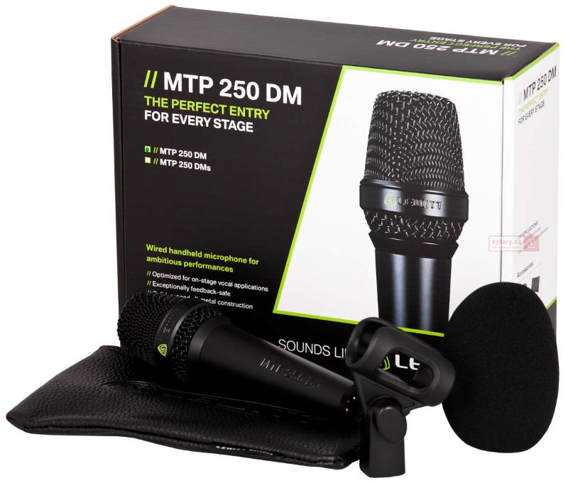 Lewitt MTP 250 DM – динамический вокальный микрофон. Его частотная характеристика специально оптимизирована для передачи вокала. Рабочий диапазон частот устройства составляет 60-18 000 Гц, а чувствительность 2 мВ/Па. Кардиоидная диаграмма направленности обеспечивает изоляцию основного источника звука, снижая фоновый шум. Двойная система подвеса капсюля и резиновые крепления минимизируют уровень собственных шумов. Предусмотрен большой запас усиления до появления обратной связи.