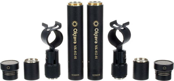 Стереопара Октава МК-012-01 — подобранная пара микрофонов с маленькой мембраной отличается габаритными размерами и впечатляющими характеристиками. Профессиональный микрофон имеет кардиоидную направленность, отличается низким уровнем шума и отсутствие трансформатора в схеме предусилителя. Это позволяет использовать микрофоны на близком или удаленном расстоянии источника от микрофона.