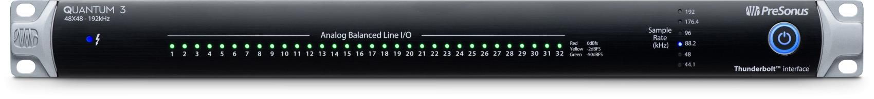 Основной особенностью новых звуковых интерфейсов Quantum от компании Presonus является использование высокоскоростного интерфейса Thunderbolt, а также возможность каскадирования до 4 интерфейсов Quantum одновременно, что позволяет собирать на базе компьютера системы записи/воспроизведения с количество каналов до 100 и более. Пользователи серии Quantum это, в первую очередь, владельцы компьютеров MAC. Высокая скорость передачи данных протокола Thunderbolt позволяет создавать стабильно работающие многоканальные звуковые устройства с ультанизким временем задержки менее 1 мс (значение получено при параметрах системы:192 kHz, 64 sample buffer in Studio One 4 on a MacBook Pro 2016, 2.7 GHz Intel Core i7 running 10.12.5. )