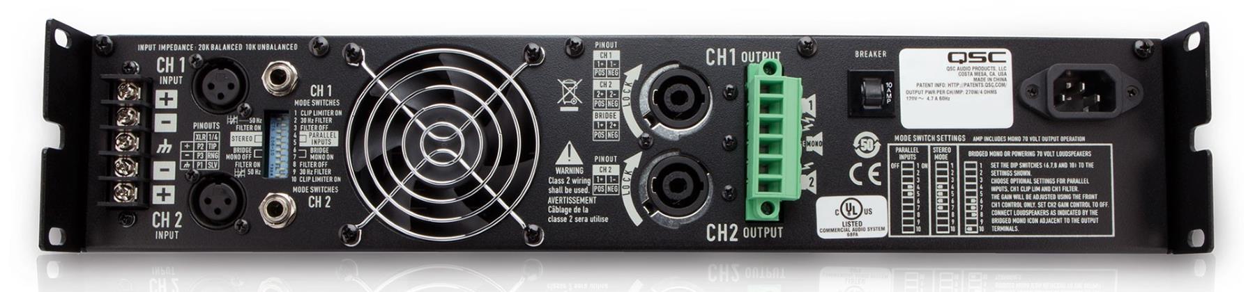 CMX500Va 700W Усилитель мощности Professional от QSC является 2RU прочный блок, предназначенный для удовлетворения потребностей системных интеграторов. Этот усилитель используется в помещениях, таких как производительность залов, молитвенных домов, спортивных клубов, спортивных залов, танцевальных площадок, пабов и систем FGM / BGM.Усилитель использует мощный, сильноточный тороидальный трансформатор с фильтрацией, чтобы обеспечить щедрые запасы энергии. Это позволяет усилителю легко справиться с переходными процессами на высоком уровне, даже при движении строгих нагрузки динамиков 2 Ом.Секции выходного усилителя имеют прочный класс AB архитектуры. Автоматическое ограничение тока защищает усилитель от повреждений, пока короткое не будет устранена. Она также имеет системы защиты от постоянного тока для предотвращения повреждения громкоговорителя в маловероятном случае выхода из строя выходного транзистора. напряжение постоянного тока от источника питания никогда не передается непосредственно к динамикам, даже в случае ее пробоя выходной цепи.