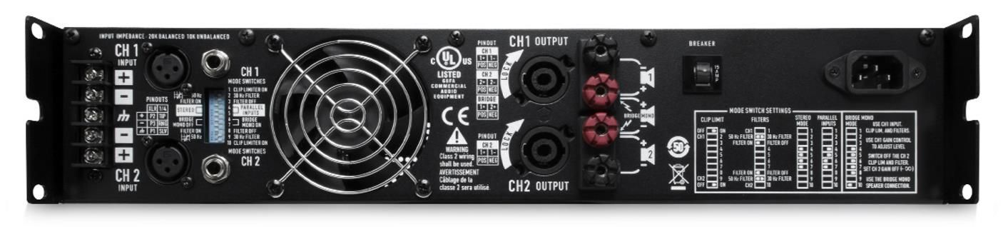 Двухканальный усилитель RMX850a обладает всеми достоинствами серии RMX. Технология SMT (Surface Mount Technology) увеличивает плотность монтажа элементов и беспечивает высокую производительность при компактном размере. В выходном каскаде усилителя используются высококачественные элементы, обеспечивающие сверхнизкие нелинейные искажения (THD<0,03%). Для оптимального охлаждения транзисторы комплементарного выходного каскада смонтированы непосредственно на радиаторе. Фронтальные регуляторы усиления, отключаемый ограничитель клиппирования и светодиодные индикаторы мониторинга производительности позволяют осуществить точную настройку. Модель RMX850 оснащена независимой системой защиты от постоянного тока и тепловой перегрузки на каждом канале.