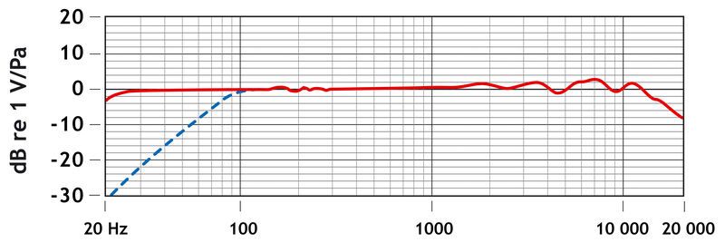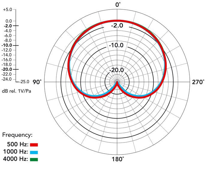 В комплекте имеется два резьбовых адаптера 1/4" - 5/8" и 1/4" - 3/8", благодаря которым капсюльный блок может крепиться на разных микрофонных стойках, штативах и "удочках". Капсюль подключается к предусилителю с помощью специального 3-метрового кевларового кабеля, армированного волокном. Схема предусилителя, изготовленная по технологии поверхностного монтажа, включает 2-позиционный аттенюатор (ослабление сигнала 0 dB и -10 dB) и 2- позиционный обрезной фильтр низких частот. Оба они расположены на расстоянии от капсюля, что обеспечивает дополнительный контроль над микрофоном без необходимости менять положение капсюля.