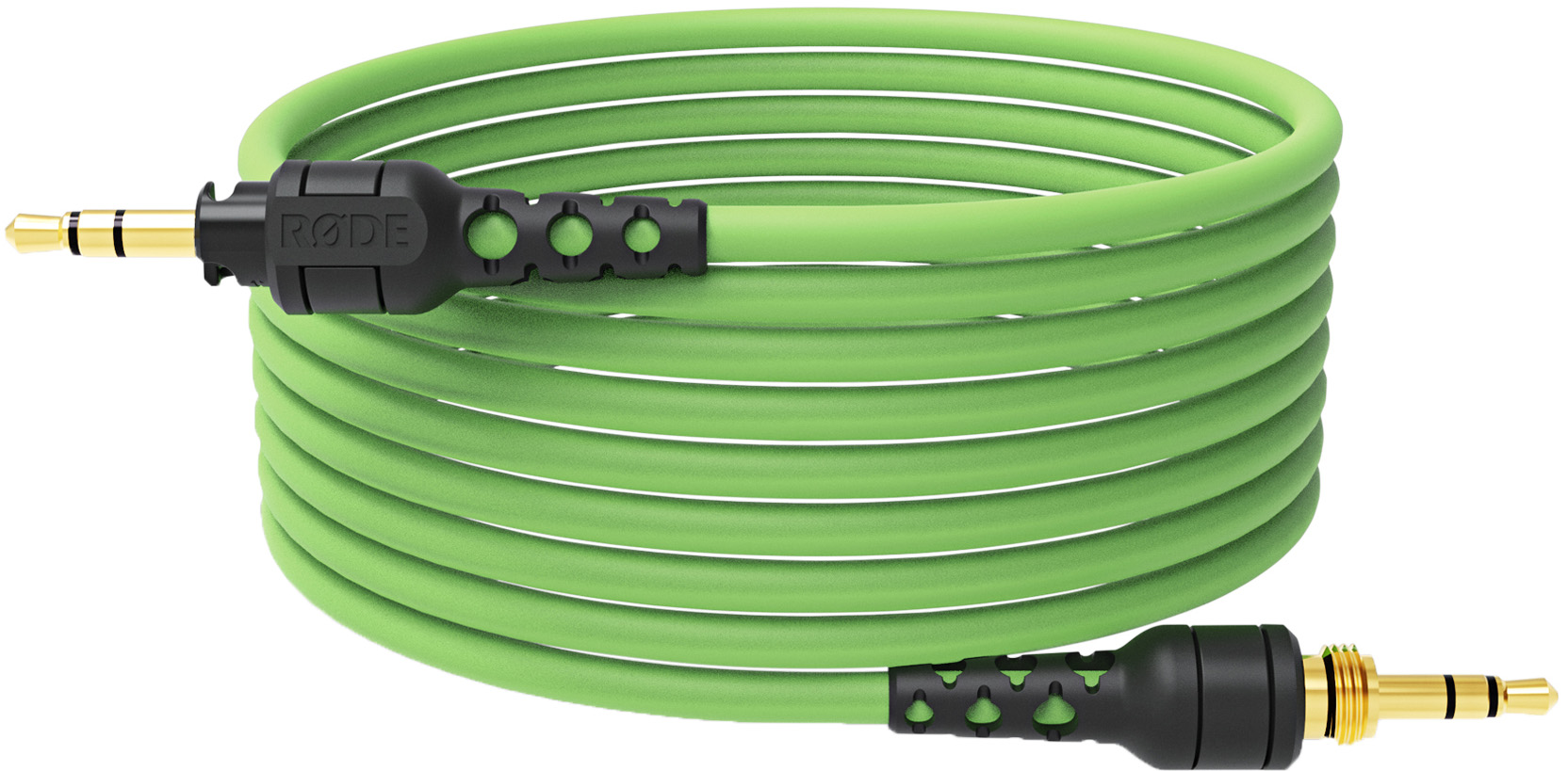 Rode NTH-CABLE24G - съемный односторонний кабель для закрытых наушников Rode NTH-100. Оснащен двумя разъемами 3.5 мм jack, кроме того, в комплекте поставляется адаптер с 3.5 мм на 6.3 мм. На одном конце кабеля фиксирующий разъем, который надежно крепится к одной из чашек для уха. Длина составляет 240 см. Выполнен в зелёном цвете.