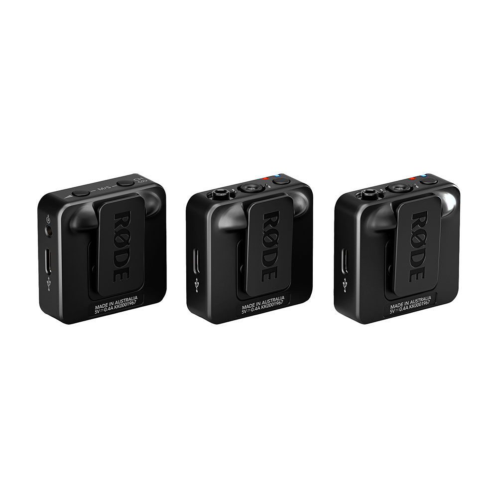 • Разработано и произведено на высокоточных производственных мощностях RØDE в Сиднее, Австралия. Технические характеристики: Акустический принцип: Поляризованный микрофон. Диаграмма направленности: всенаправленная. Частотный диапазон: 20 Гц – 20 кГц. Максимальный уровень звукового давления (SPL): 123,5 дБ SPL. Эквивалентный уровень шума (A-взвешенный): 22 дБА. Отношение сигнал/шум: 72 дБ. Аналоговые входы: 3,5 мм фиксирующий TRS (TX). Аналоговые выходы: 3,5 мм TRRS (RX). Радиус передачи: 260 м (прямая видимость). Цифровое подключение: USB-C. Электропитание: встроенный аккумулятор, заряжаемый через USB-C (5V, 0,4A). Время работы: до 7 часов.