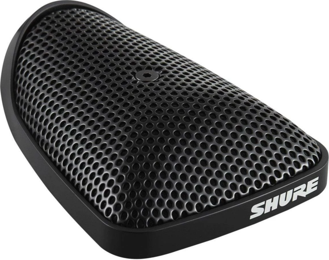 Shure CVB-B/C - микрофон граничного слоя. Конденсаторный капсюль с кардиоидной диаграммой направленности обеспечивает высокую чувствительность к речи выступающих. При создании данной модели была использована фирменная CommShield ® Technology, которая защищает передаваемый через микрофон звук от радиочастотных помех, которые иногда создают различные портативные беспроводные устройство. Микрофон имеет XLR-кабель длинной 4 метра. Благодаря этому его можно разместить даже в достаточно больших помещениях. Может использоваться для телеконференций, в залах суда или в конференц-зале.