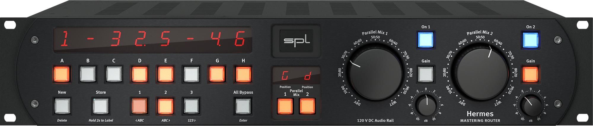 Новый Hermes от SPL произвёл революцию в сфере студийного мастеринга. Особенность его заключена в том, что прибор оснащён восемью 2-канальными процессорами, через которые можно передавать аудиосигнал в любом порядке и в любом направлении. Определяемые пользователем пресеты позволяют сравнивать между собой сложные цепочки обработки всего лишь одним нажатием кнопки.