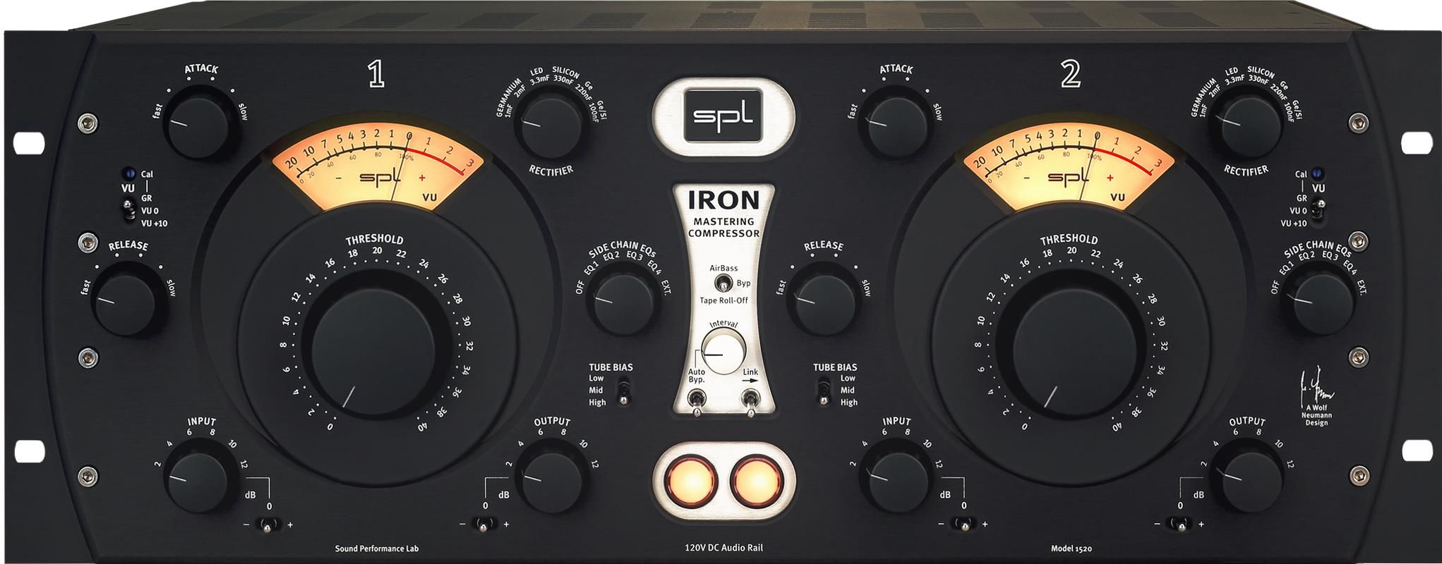 Мастеринг-компрессор IRON изначально был задуман как лимитер/компрессор с переменным смещением. Однако внедрение новых технологий приводит к большим усовершенствованиям. Основной принцип действия IRON в качестве лампового компрессора с переменным смещением был отчасти вдохновлен звуковой и технической работой компрессоров Fairchild, Collins и Gates, в которых используется внешнее отключение смещения лампы, чтобы обеспечить хорошо сбалансированную, хорошо компенсированную и музыкальную компрессию. Однако компрессор IRON имеет в своей схеме вторую лампу с крутым срезом, триод переменного смещения. Данная лампа соединена параллельно с другой «cut-off» лампой и имеет значительно более крутую кривую характеристик. Лампа, используемая для обработки сигнала, зависит от амплитуды последней. Это приводит к более сбалансированному звучанию и более управляемым настройкам параметров. Пара параллельно установленных ламп специально подбирается для IRON. Для гарантии того, что сопряжение выбранных ламп идеально, в SPL используют тест Roe Weigl для ПК. Оптимальный выбор ламп гарантирует, что все компрессоры IRON имеют одинаковые звуковые характеристики.