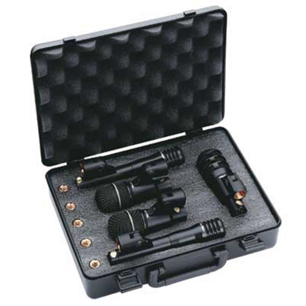 Superlux DRKA3C2 - набор из пяти барабанных микрофонов. Они предназначены для использования во время живых выступлений, а также для репетиций. PRA-218A предназначен для большого барабана, два PRA-228A - для томов и еще два конденсаторных микрофона PRA-268A - для оверхедов. Кроме того, их можно использовать для снятия звука со струнных и духовых инструментов. Все микрофоны оснащены несъемными держателями для установки на стойки.