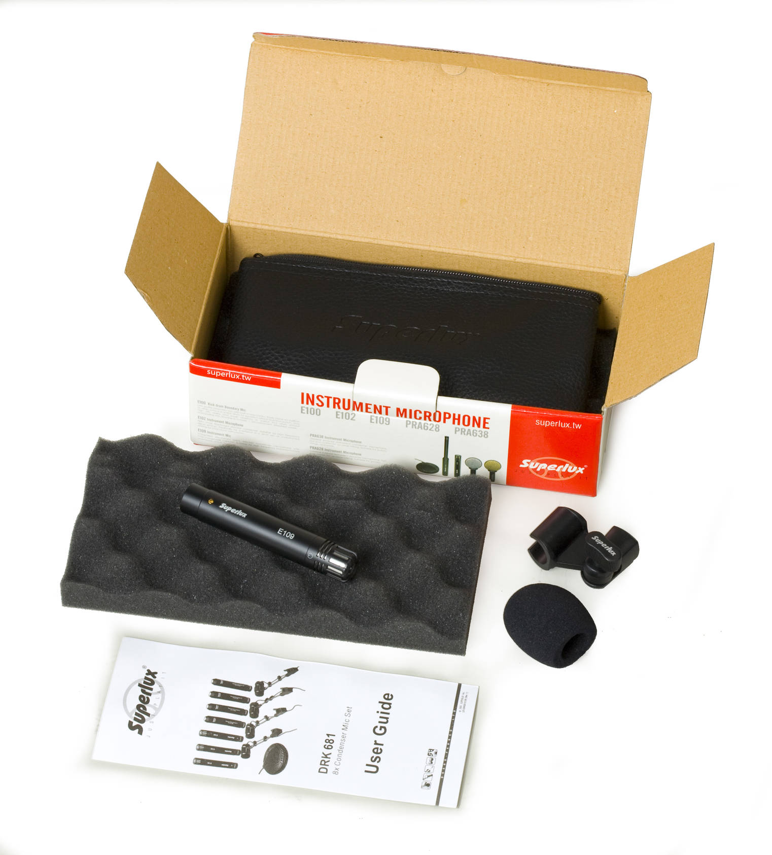 Superlux E109 - инструментальный конденсаторный микрофон со сменными капсюлями. Больше всего он подойдет для инструментов среднего и высокого частотного диапазона, например, хай-хетов, тарелок, гитары, скрипки и др.
