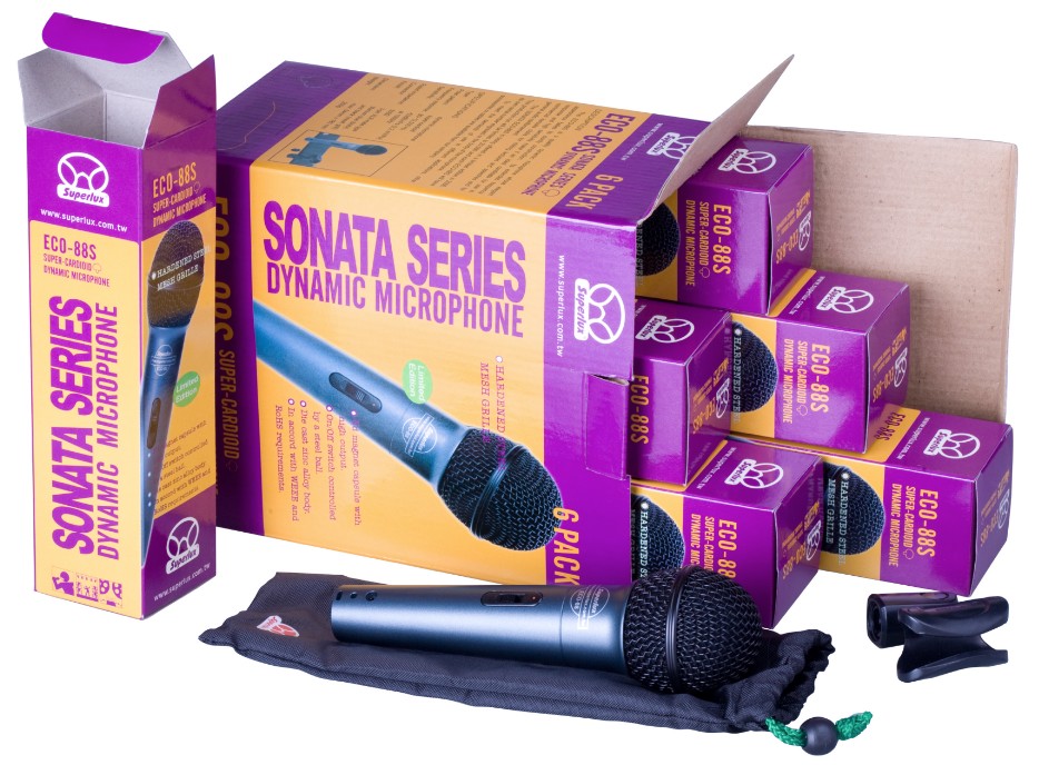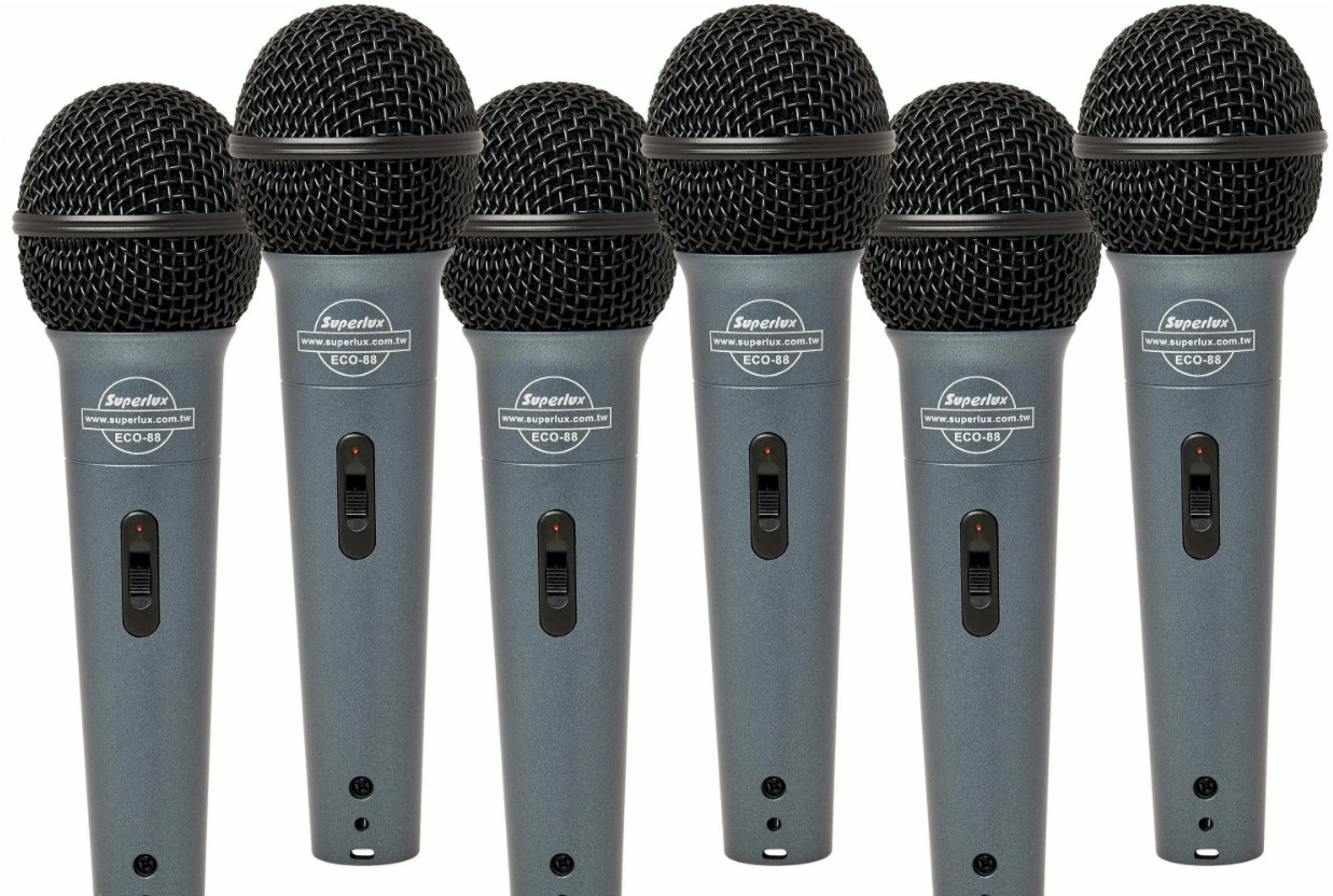 Superlux ECO88S 6 pack - набор из шести вокальных динамических микрофонов, каждый из которых обладает высокой чувствительностью и прочной конструкцией.