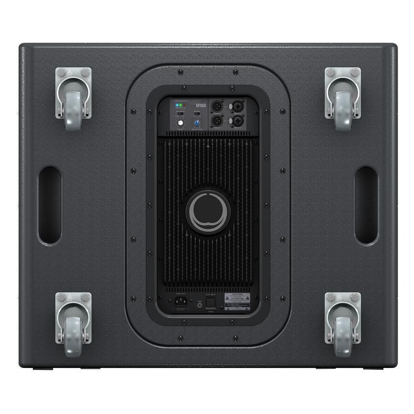 Milan M18B – компактный 18" сабвуфер, который расширяет частотный диапазон и увеличивает полную громкость любых Milan акустических систем. Встроенный усилитель обеспечивает сабвуфер 2200 Вт максимальной выходной мощностью для воспроизведения широкого динамического диапазона. Два отдельных сбалансированных XLR входа плюс соответствующие Thru разъемы на сбалансированных XLR позволяют включать сабвуфер в стерео систему с двумя полно диапазонными акустическими системами Milan. Переключатель 3dB boost доступен для частот от 40 Гц до 90 Гц, что позволяет выровнять бас частоту в соответствии со всей системой. Переключатель полярности обеспечивает оптимальную интеграцию сабвуферу. На задней панели расположены светодиодные индикаторы питания, наличия сигнала и ограничителя.