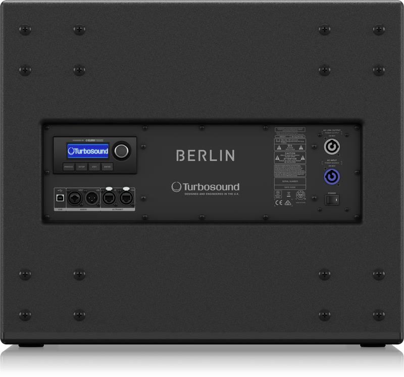 Серия Berlin представляет собой линейный массив постоянной кривизны с углом раскрытия элемента TBV123 по вертикали 15°. Элемент предназначен для работы совместно с сабвуфером прямого излучения TBV118B. Кроме пассивных версий, существуют активные версии TBV123 AN и TBV118B AN. В них используется активный усилительный модуль с процессингом Klark-Teknik. Сигнал на активные колонки может подаваться в аналоговом и в цифровом виде по протоколу ULTRANET с цифровых микшеров и стейджбоксов Behringer и Midas. Модели серии Turbosound Berlin идеально подходят для инсталляций в залах малого и среднего размера, а благодаря интегрированной системе подвеса, могут использоваться и в небольшом прокате.