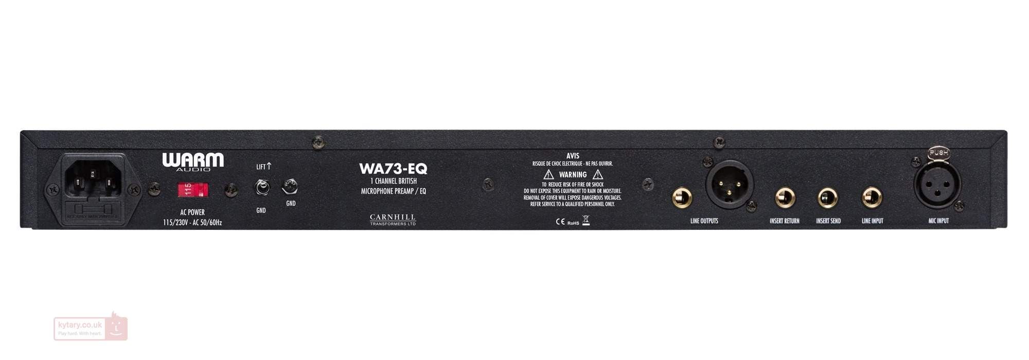 Одноканальный «британский» микрофонный предусилитель Warm Audio WA73-EQ дополнительно укомплектован высококачественным трёхполосным эквалайзером для коррекции частот. Он относится к классу винтажных предусилителей «в стиле '73», которые многие профессиональные инженеры определили, как эталонный для записей в стилях поп/рок в течение десятилетий. Винтажный предусилитель Warm Audio '73 до сих пор считается одним из лучших в данном сегменте сегодня. Семейство Warm Audio WA*73 состоит из лучших одноканальных и двухканальных предусилителей «в стиле '73» (с эквалайзером или без него): это как раз те модели, в которых можно получить настоящий «британский» звук.